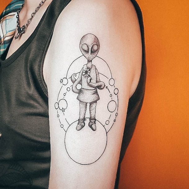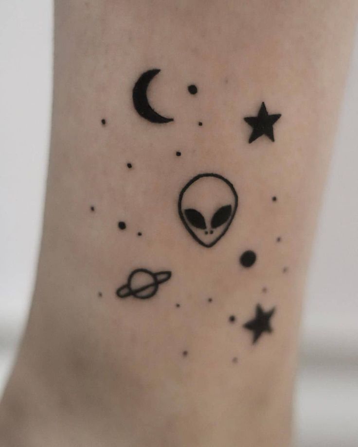 Choosing a Design: The first step is to decide on the design of your aliens tattoo. Consider what elements you want to include, such as extraterrestrial beings, UFOs, planets, or cosmic landscapes. Think about the style you prefer, whether it’s realistic, abstract, cartoonish, or geometric. Look for inspiration online, in tattoo magazines, or from your favorite science fiction works.