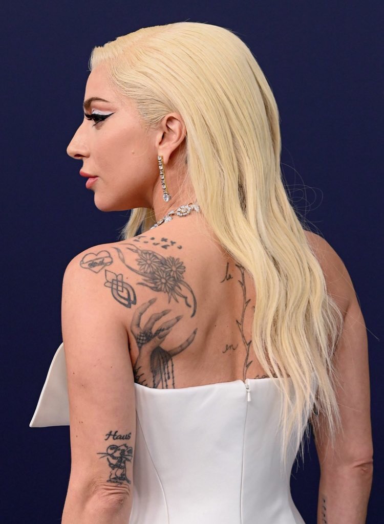 Lady Gaga’s tattoos are not just artistic expressions; they are deeply personal and often pay homage to her loved ones. One of the most significant tattoos she sports is the word “Dad” inked on her left shoulder. Lady Gaga’s tattoo is a heartfelt tribute to her father, Joe Germanotta, reflecting their close bond and her gratitude for his support throughout her career.