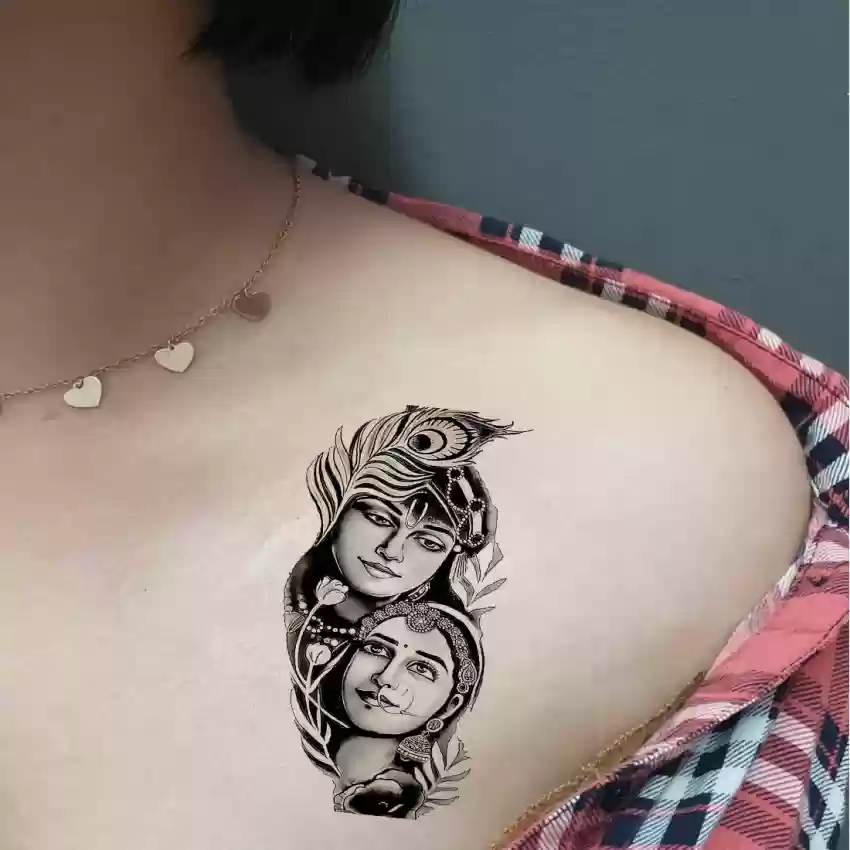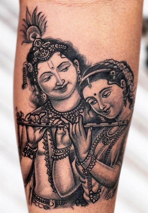Another popular design is the depiction of Krishna dancing with his consort, Radha. This design emphasizes the theme of divine love and the sacred union between the divine and the devotee. The intricate patterns and flowing movements in this tattoo often highlight the dynamic and joyful nature of Krishna’s divine play.