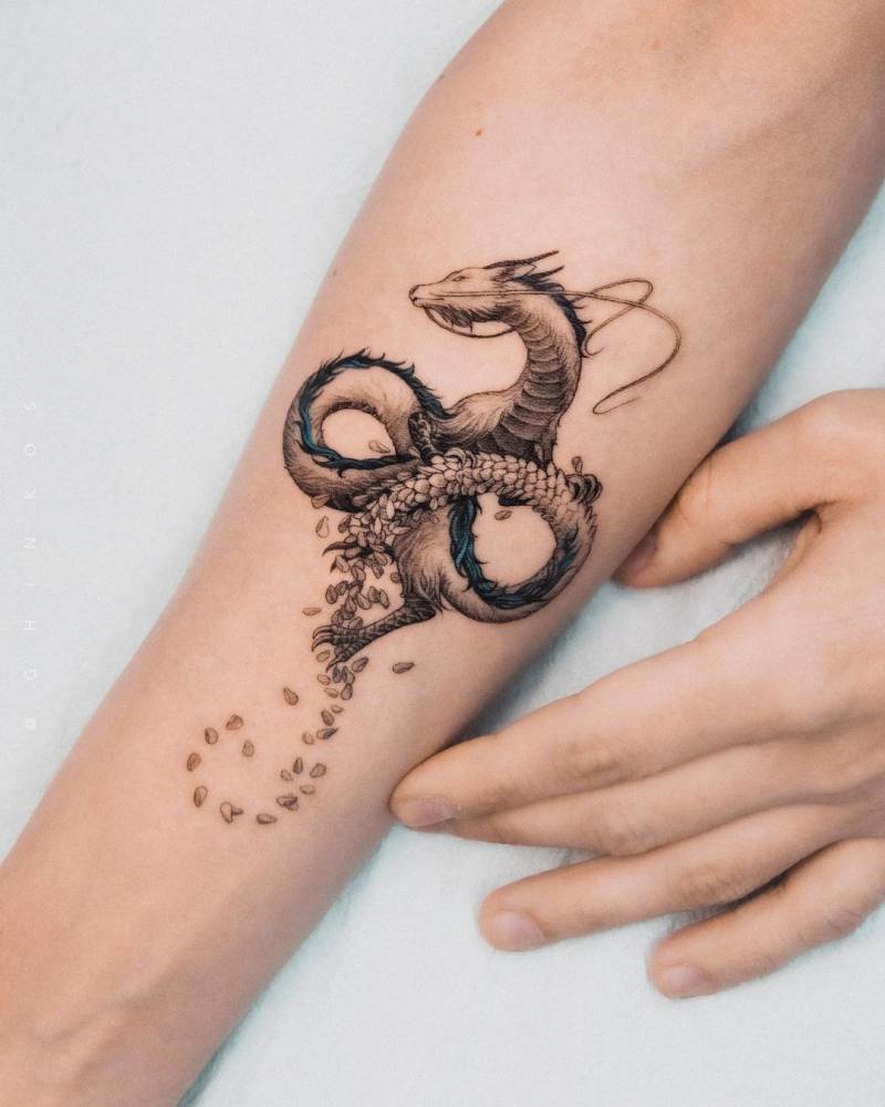 Choosing a Haku tattoo allows for creative freedom, with designs varying from realistic depictions of Haku’s dragon form to more abstract interpretations. Some opt for minimalist designs, focusing on the fluid, serpentine lines of the dragon, while others prefer detailed, intricate portrayals capturing Haku’s ethereal beauty and complexity. The use of colors, such as shades of blue and white, often adds depth, evoking the serene yet powerful essence of the character.